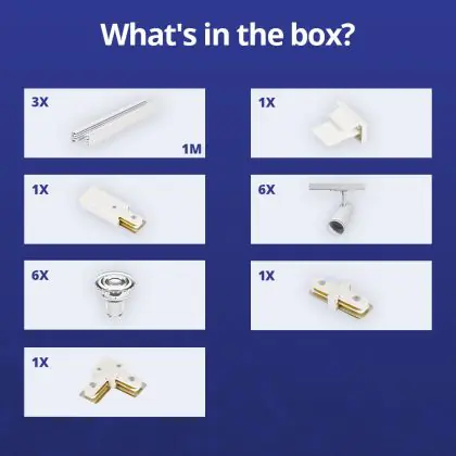 | Manufacturer Name | Complete L shaped 1-Phase Track Set White incl. 6x Spot fixture + GU10 2700K 3W Dim – 1 x 2 meters i | |