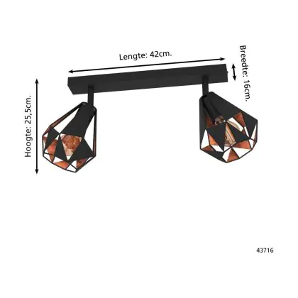Eglo Ceiling Light Carlton 7 Steel Black Copper | IP20 - Suitable for 2x E27