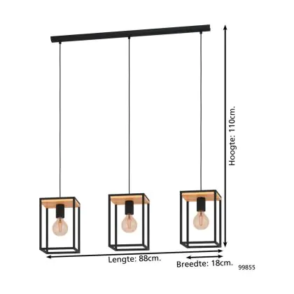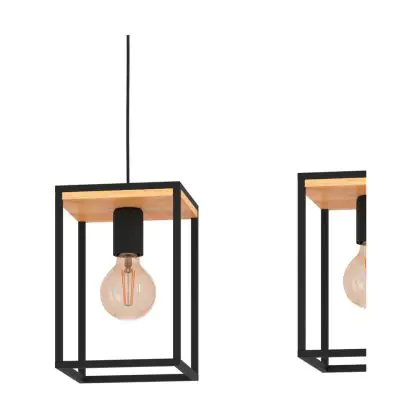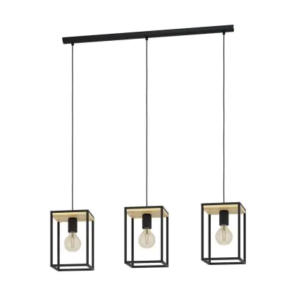 Eglo Pendant Libertad Steel Wood Black Brown | IP20 - Suitable for 3x E27