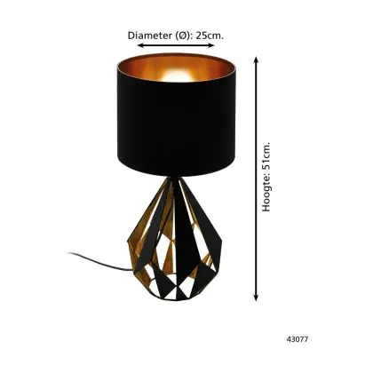 Eglo Table Lamp Carlton 5 Steel Black Copper | IP20 - Suitable for 1x E27