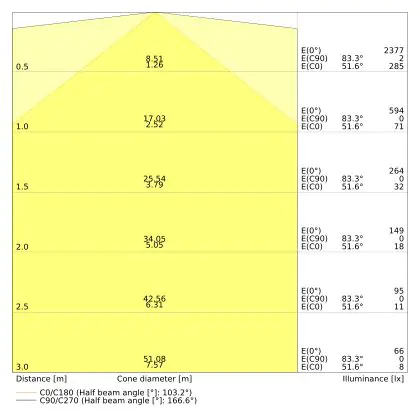 ![]() The colour code is a combination of colour rendering (CRI) and light colour (Kelvin). The first number indicates the colour rendering (1 = very poor colour rendering, 9 = maximum colour fastness). The second and third number contains the light colour. Example: the colour code 830 consists of good colour rendering (8) and warm white light (3000K). |