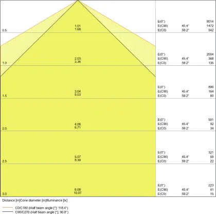 ![]() The colour code is a combination of colour rendering (CRI) and light colour (Kelvin). The first number indicates the colour rendering (1 = very poor colour rendering, 9 = maximum colour fastness). The second and third number contains the light colour. Example: the colour code 830 consists of good colour rendering (8) and warm white light (3000K). |