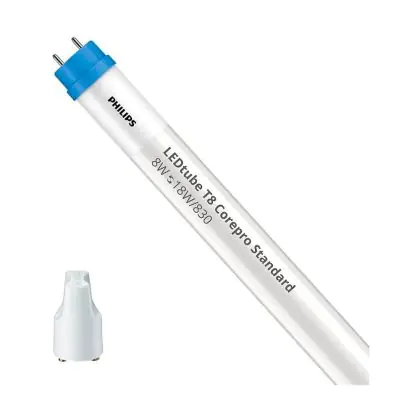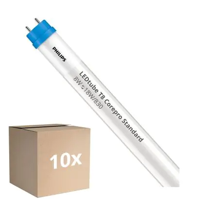 Multipack 10x Philips LED Tube T8 CorePro (EM/Mains) Standard Output 8W 750lm - 830 Warm White | 60cm - Replaces 18W