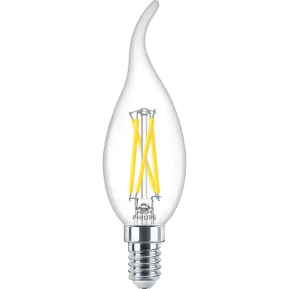 Multipack 10x Philips MASTER LED E14 Bent-tip Candle Filament Clear 2.5W 340lm - 922-927 Dim To Warm | Best Colour Rendering - Dimmable - Replaces 25W