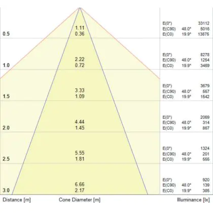 A beam angle indicates the angle of the light beam coming from a light source. The smaller the radiation angle in degrees (D), the narrower the beam angle.