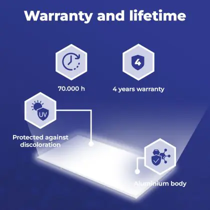 The most common sizes of LED panels are 60x60cm (square) and 30x120cm (rectangular). These are standard sizes for almost all suspended ceilings. There are also various other dimensions available, such as 20x120cm or 15x150cm.