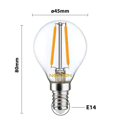 | Manufacturer Name | Noxion Lucent Filament LED Lustre P45 E14 220-240V 2.5W 250LM CRI80 2700K NON-DIM (25W eqv.) | |